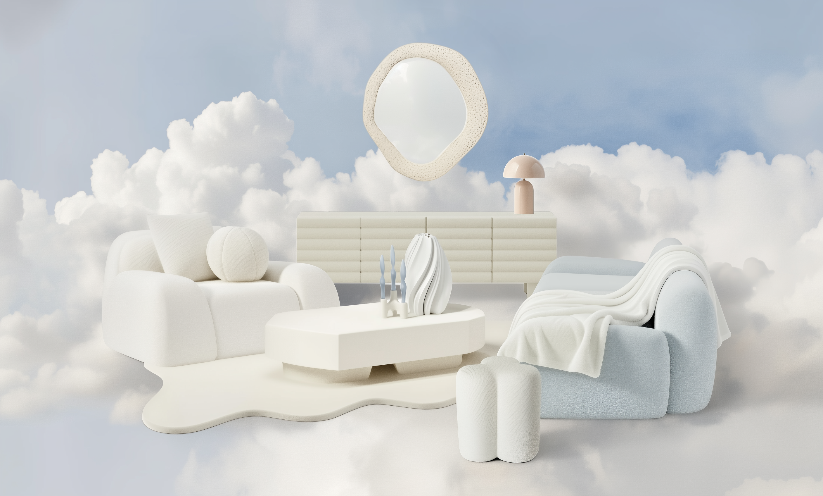 Cloud Dancer is ideal for tone-on-tone settings. Various white and cream shades create harmonious layering that conveys warmth and structure. But it also pairs beautifully with pastel colours, giving the space a fresh and modern feel.